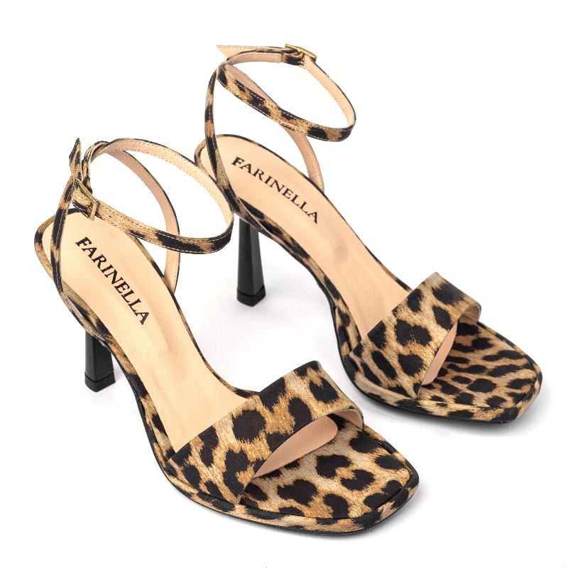 Sandalia. Material cuero vacuno print taco pintado al tono. Altura de taco 8cm Altura de plataforma 1cm