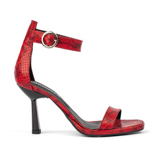 Sandalia. Material cuero vacuno metalizado y faja de strass taco pintado al tono. Altura de taco 8cm Altura de plataforma 1cm