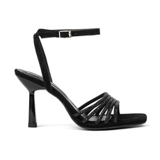 Sandalia. Material cabra gamuzada y faja de strass taco pintado al tono. Altura de taco 8cm Altura de plataforma 1cm