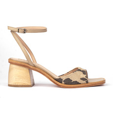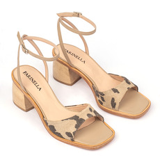 Sandalia. Material cuero vacuno print. Taco de madera Kiri y suela Altura de taco 5cm