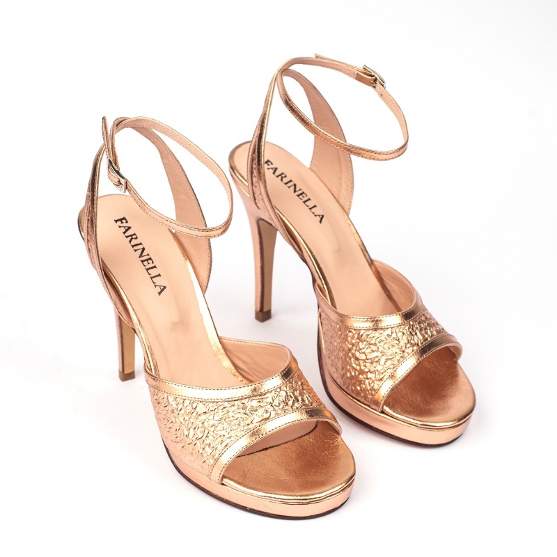 Sandalia. Material cuero vacuno. Altura de taco 10cm Altura de plataforma 1cm.