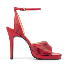 Sandalia. Material cuero vacuno. Altura de taco 10cm Altura de plataforma 1cm.