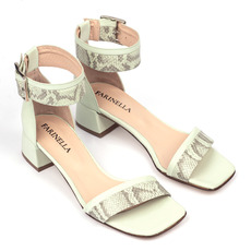 Sandalia. Material cuero vacuno faja y pulsera conbinada. Altura de taco 3.5cm