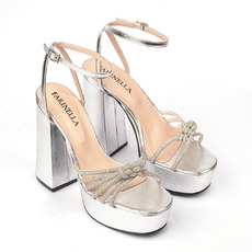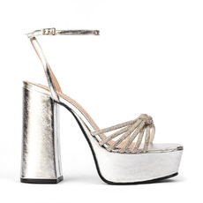Sandalia. Material cuero vacuno. Altura de taco 11 cm. Altura de plataforma 4 cm.