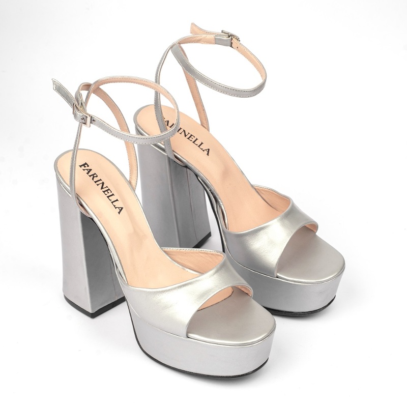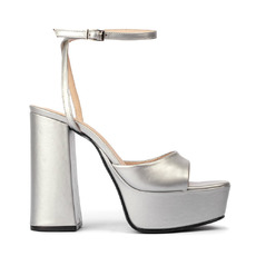 Sandalia. Material cuero vacuno. Altura de taco 11 cm. Altura de plataforma 4 cm.