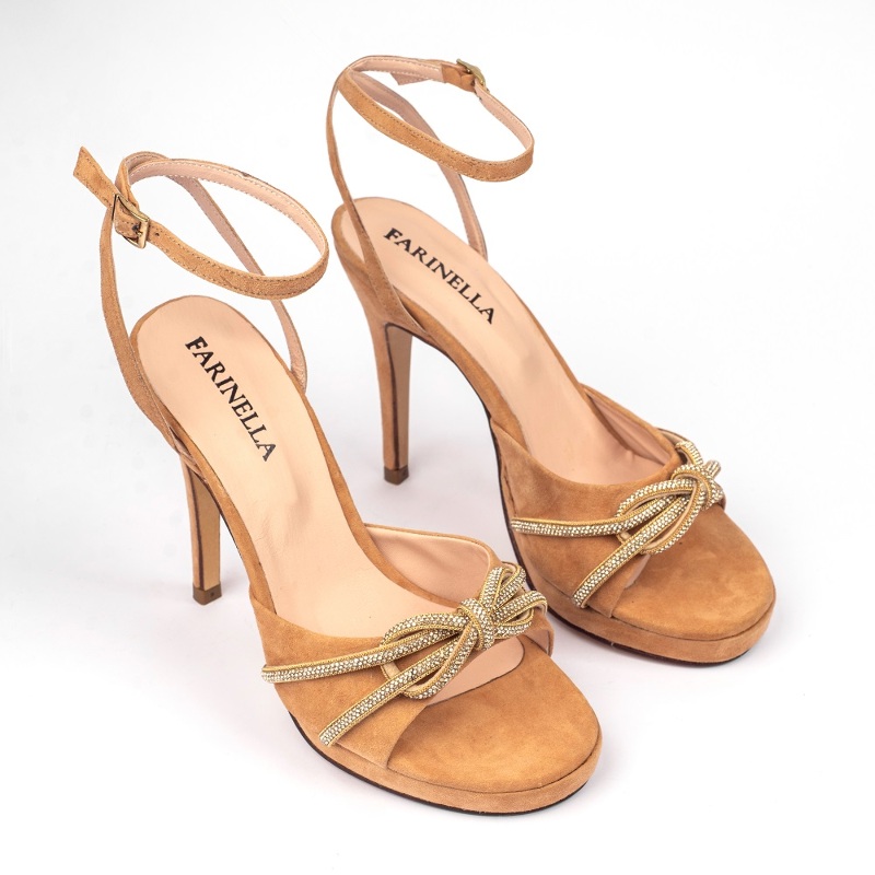 Sandalia. Material cuero vacuno. Altura de taco 10cm Altura de plataforma 1cm.