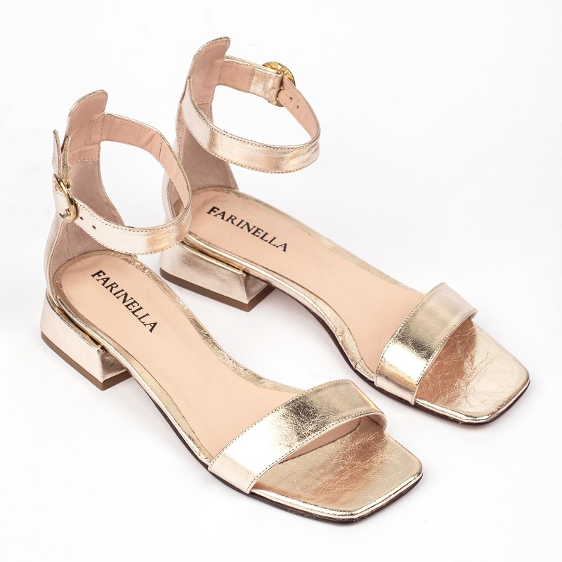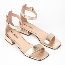 Sandalia. Material cuero vacuno metalizado. Altura de taco 2.5cm