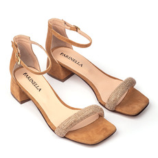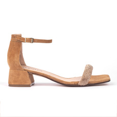 Sandalia. Material cabra gamuzada faja strass. Altura de taco 3.5cm