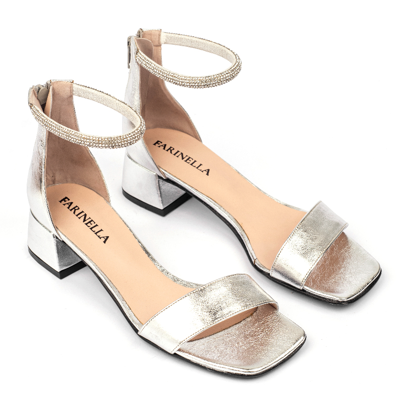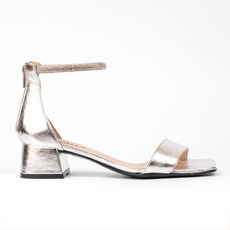 Sandalia. Material cuero vacuno metalizado pulsera strass. Altura de taco 3.5cm