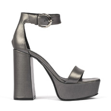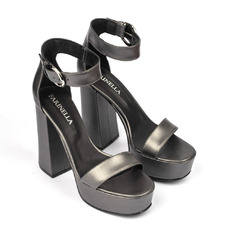 Sandalia. Material cuero vacuno. Altura de taco 11 cm. Altura de plataforma 4 cm.