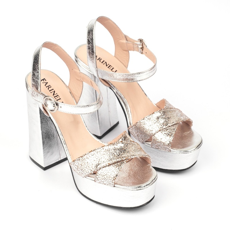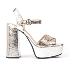 Sandalia. Material cuero vacuno. Altura de taco 11 cm. Altura de plataforma 4 cm.