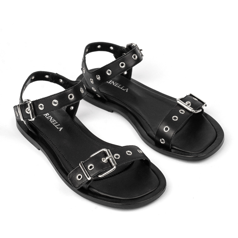 Sandalia Flat. Material cuero vacuno detalle de ojalillosy pulsera regulable.