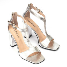 Sandalia. Material cuero vacuno capellada de Strass. Altura de taco 8,5cm