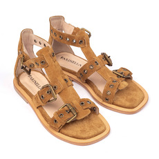 Sandalia Flat. Material cuero vacuno. Detalle de 3 hebillas al tono.