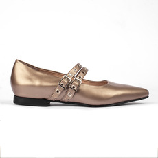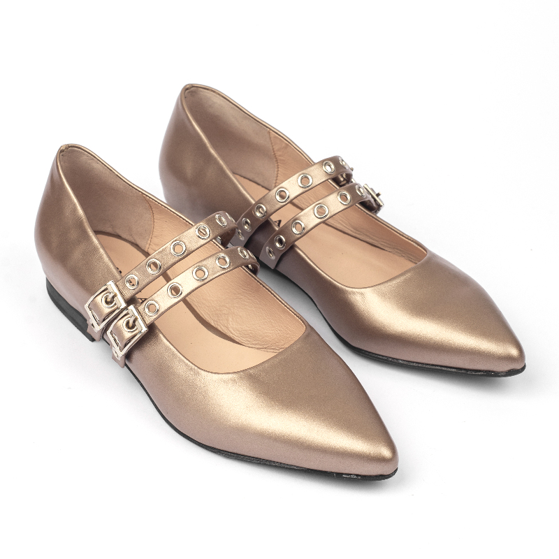Chatita clsica. Material Cuero vacuno saten detalle de tiras con hebilla y ojalillos plata. Altura de taco 1.5cm