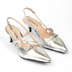 Stiletto. Material cuero vacuno metalizado. Altura de taco 3.5cm